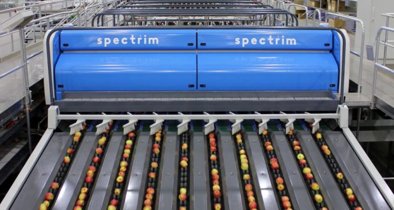 When using Spectrim, first the apples are sorted according to surface blemishes. Then they are graded on minor and major defects, including skin blemishes, insect damage, misshapen fruit, bruising, and abrasions. Sorting parameters can be configured to grade for differing levels of defects, so that there’s full control when matching product grades to different markets.