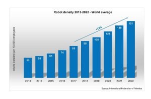 “Robot density data reveal the state of automation worldwide and allow us to compare regions and countries,” says Marina Bill, President of the International Federation of Robotics. “The speed of robotics adoption in factories around the world is impressive: the new global average robot density hit an all-time high of 151 robots per 10,000 employees – more than double the number measured only six years ago.”